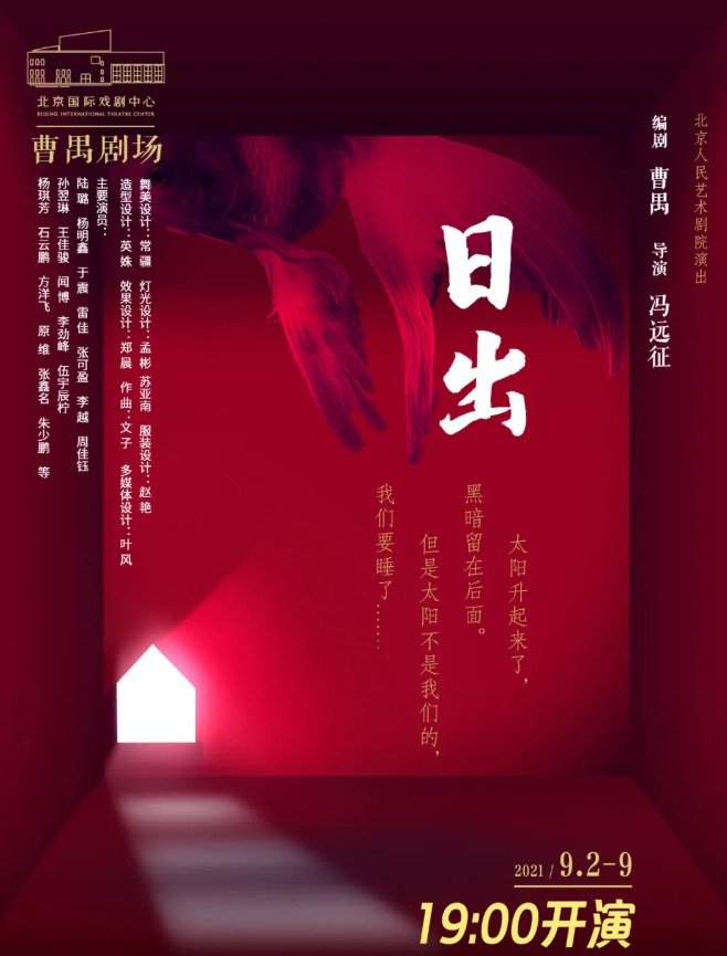 2021年8月23日,北京人藝新排版《日出》舉辦媒體見面會,導(dǎo)演馮遠征,攜主演于震、陸璐、楊明鑫、雷佳等亮相媒體。在北京人藝的歷史上,曾有過四版對《日出》的演繹,再次將這部家喻戶曉的作品進行新排并用來為新劇場啟幕,因為它不僅是曹禺先生的代表作,還曾是上世紀(jì)50年代首都劇場建成后的開幕大戲。為向北京人藝老院長、劇作家曹禺先生致敬,北京國際戲劇中心內(nèi)的主劇場命名為曹禺劇場。一部經(jīng)典,兩座劇場,由曹禺作品《日出》再次開啟新劇場大幕。